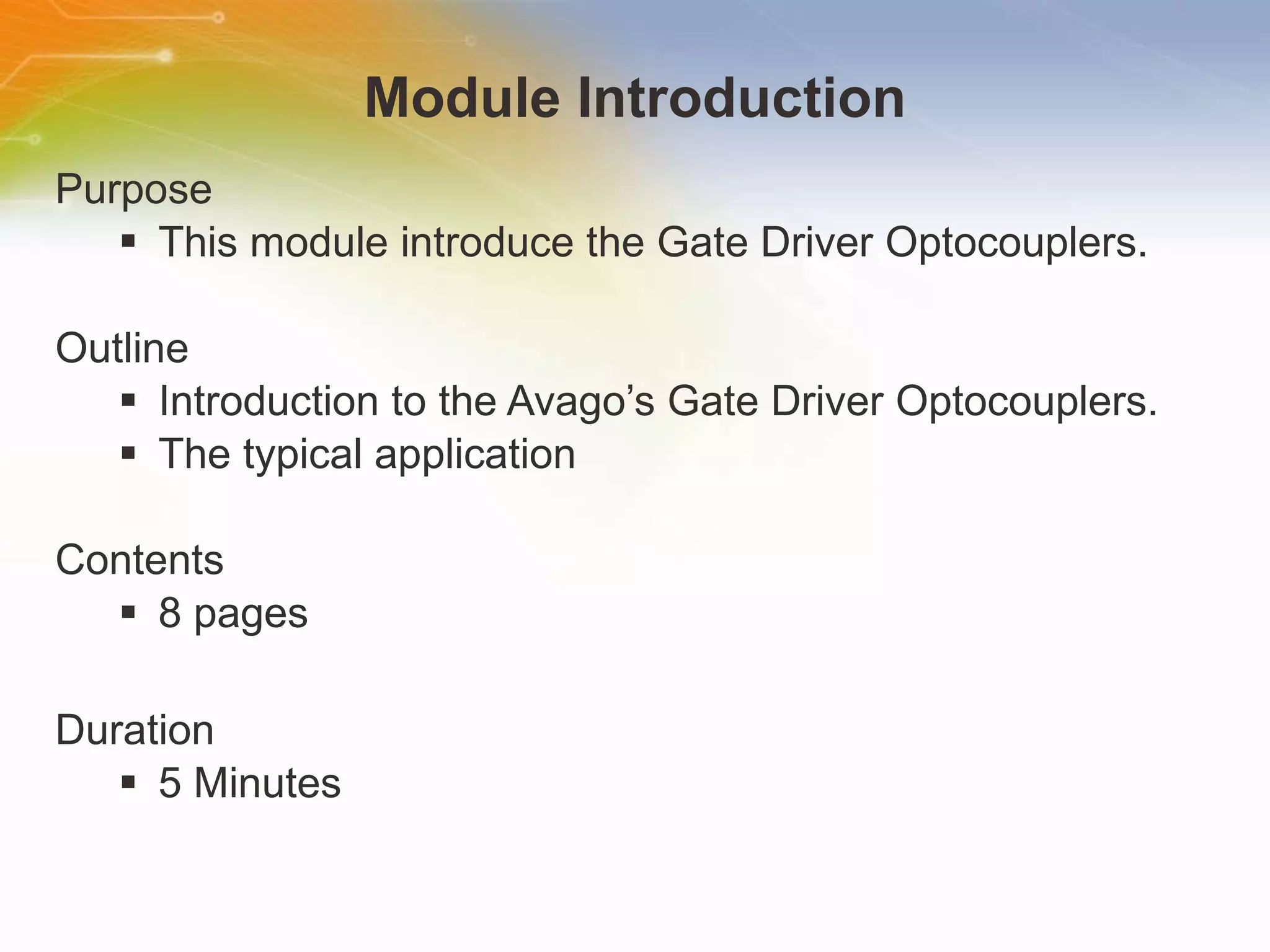 This document introduces gate driver optocouplers from Avago, which are used to drive IGBTs in variable speed motor drives. It describes the typical IGBT gate charge curve and features of the ACPL-332J and HCPL-316J optocoupler models, including maximum output current, voltage and temperature ratings, switching speeds, fault feedback, and protection capabilities. Examples of external blanking circuits using resistors and capacitors are also provided, along with resources for ordering, technical support, and additional product information.