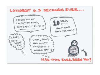#5 Everyone has been in this predicament, what I like to call the longest 6.5 seconds ever - when you arrive at a site with a task in mind and everything seems to be standing in the way. You see, in reality the online channel allows less than 2 seconds of audience attention as reaction to websites being in support of user goals is almost visceral.