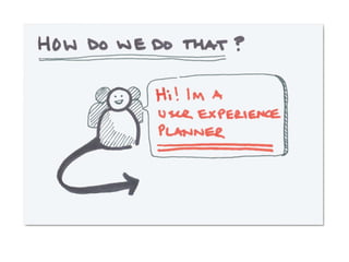 #9 Bigger Question: How do we do that? Hi, Im Abby Covert - A user experience planner. I work at a large agency with the sole purpose of making brand teams care about their users and the experience they have when interacting with that brand. There are many people moving into this space currently and we all follow a process that I think goes something like this…