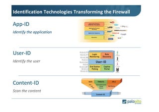 The document details the user identification (user-id) processes of a Palo Alto Networks firewall, focusing on how it maps users to IP addresses through various methods such as LDAP and WMI queries. It outlines the configuration requirements for user-id agents, monitoring of Active Directory security logs, and best practices for managing user data redistribution in complex environments. Additionally, it mentions the use of APIs for external user data integration.