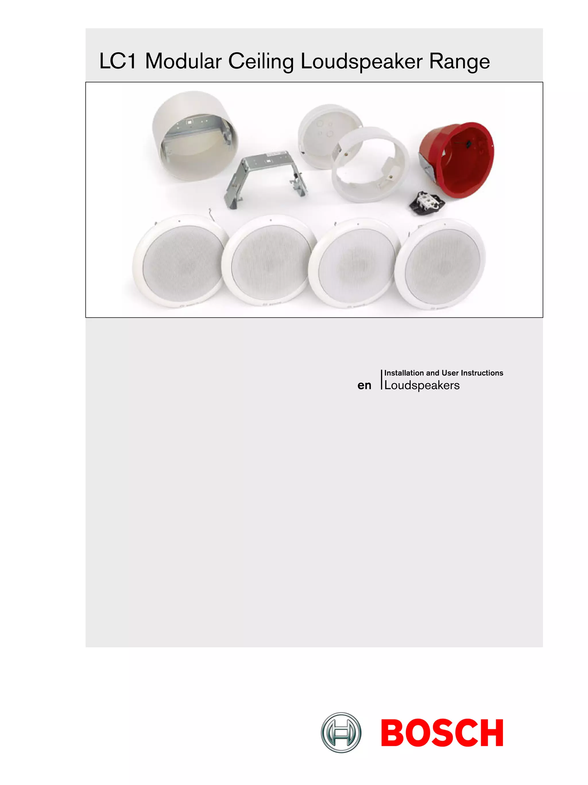The document provides information on the LC1 Modular Ceiling Loudspeaker Range, including details on the different housing options, specifications for the individual loudspeaker models, acoustical performance, and accessories. It describes five housing options - the LC1-MMSB, LC1-CMR/LC1-CBB, LC1-MFD, LC1-CSMB. It also provides technical specifications for four loudspeaker models - the LC1-WM06E8, LC1-UM06E8, LC1-UM12E8, and LC1-UM24E8.