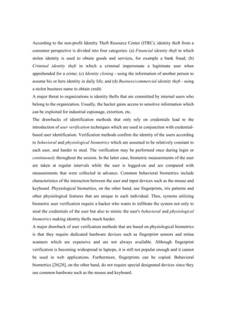 1. The document proposes a novel method for continuously verifying user identity based on characteristics of their mouse interactions.