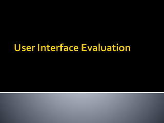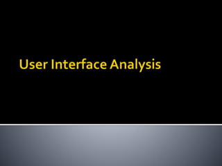 The document outlines the principles of user interface analysis and design, emphasizing the iterative process that includes analysis, design, development, and evaluation. It highlights the importance of understanding user profiles, tasks, content, and environments to create intuitive and effective user interfaces. Key concepts include the golden rules of design, flexible interaction modes, and current trends in interface aesthetics, such as simplicity and contextually relevant design.