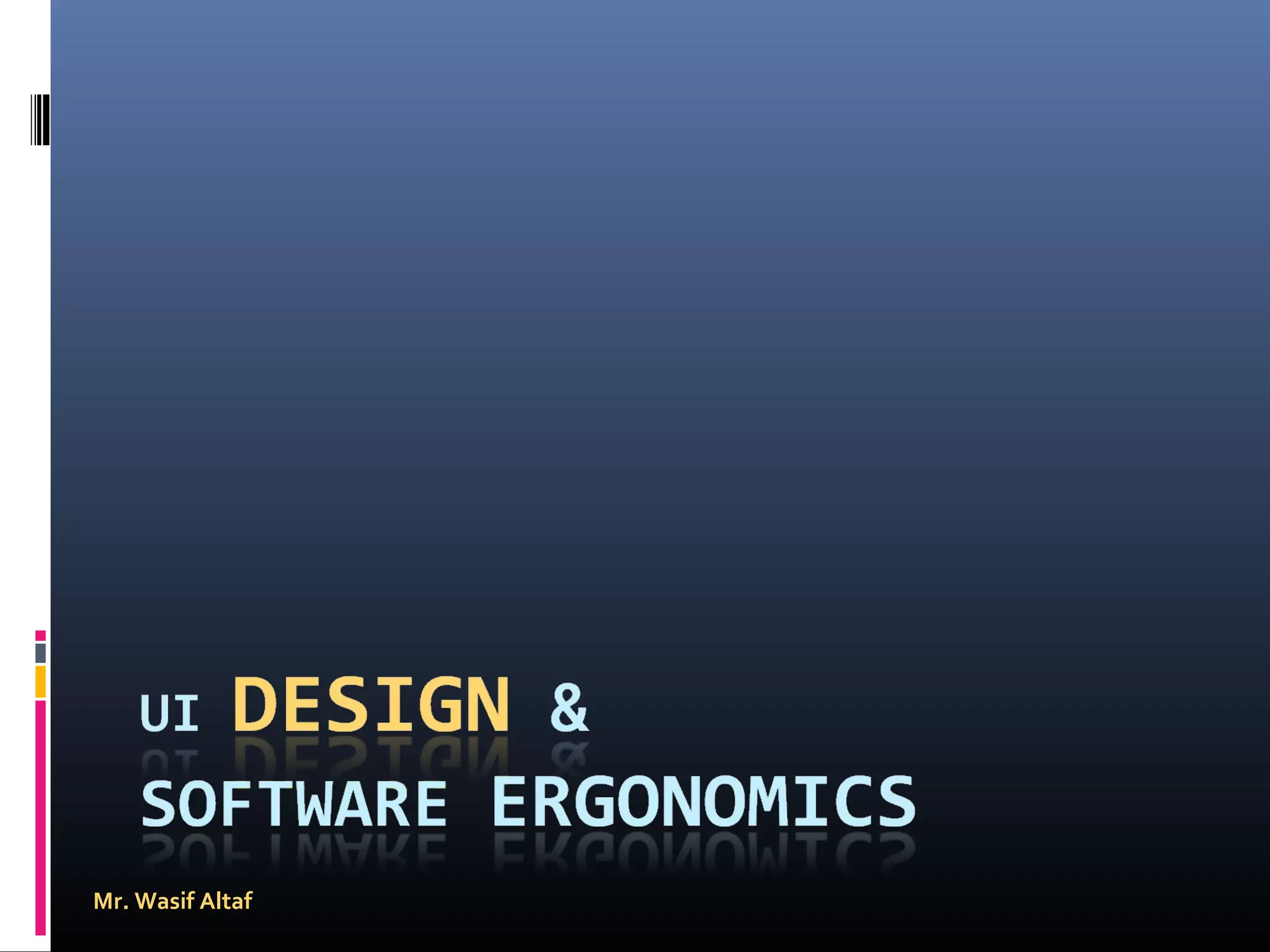 Mr. Wasif Altaf discusses the principles of software ergonomics, emphasizing the importance of creating user-friendly interfaces that encourage a pleasant interaction, reduce effort, and provide responsive design. He highlights the significance of careful questioning in UI design and the need for friendly error messages. The document also references various sources related to ergonomics and user experience in software.
