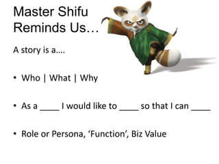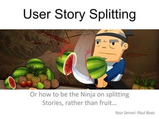 The document provides guidance on effectively splitting user stories in agile development, emphasizing the INDEPENDENT, NEGOTIABLE, VALUABLE, ESTIMABLE, SMALL, and TESTABLE (INVEST) criteria for evaluating if stories should be divided. It outlines various patterns and methods for splitting stories, including focusing on roles or operations, identifying variations in business rules, data patterns, and simplifying complexity through vertical slices. Additionally, it includes practical exercises to help teams learn story splitting techniques collaboratively.