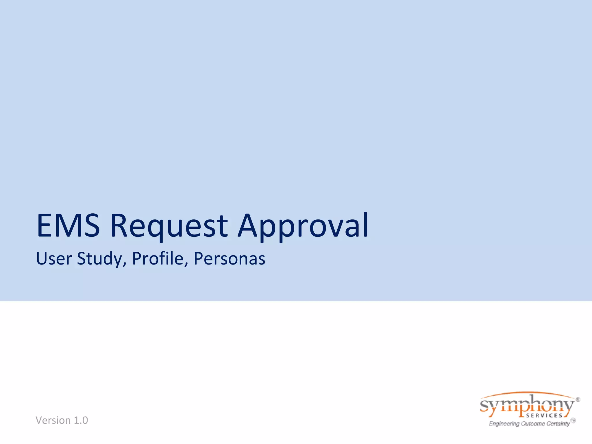 1. Three user profiles that describe typical users - a billing manager who uses the app frequently and on the go, an occasional user for emergencies, and a frequent indoor user who monitors work.