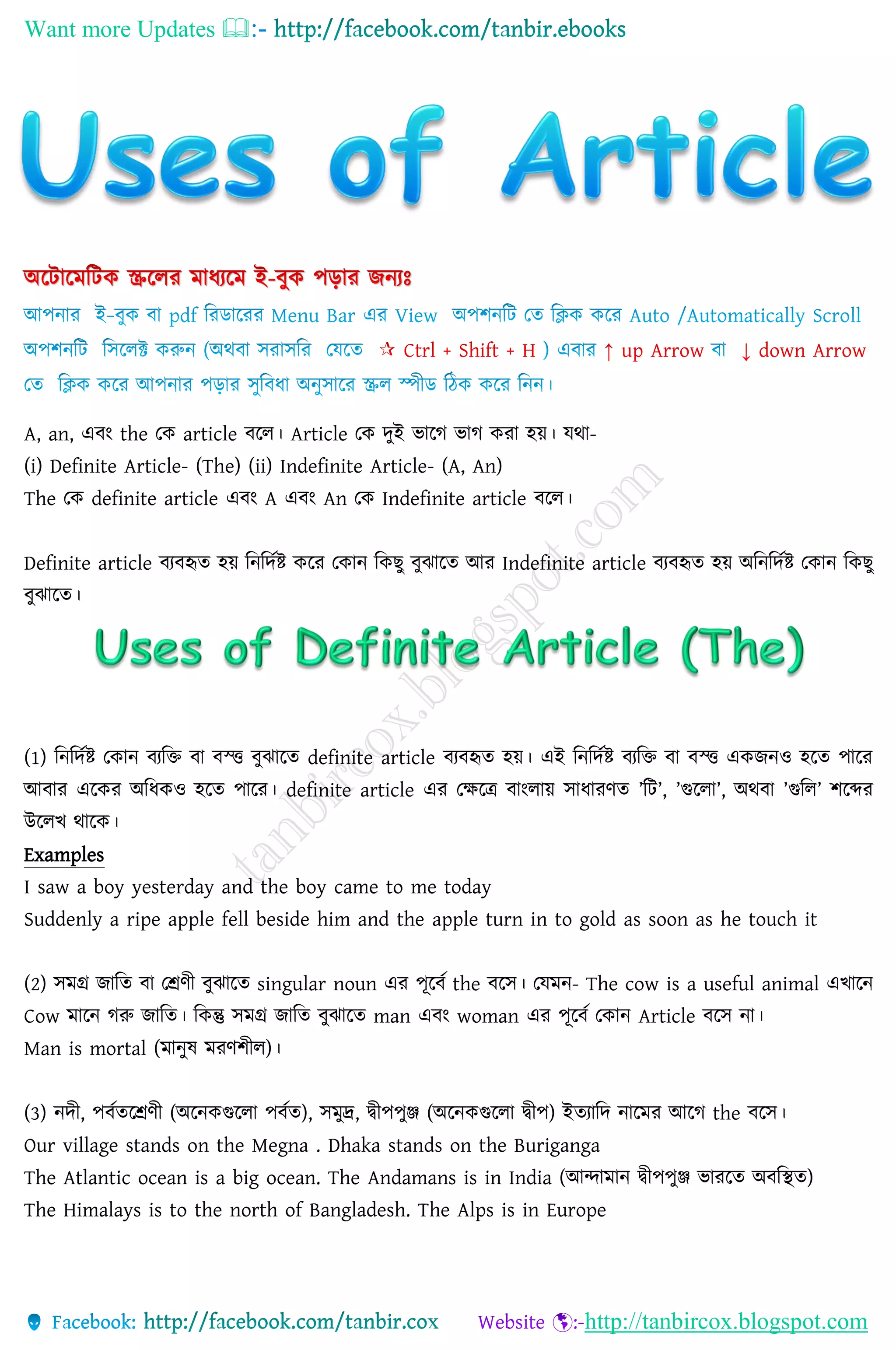 A, an, এবং the কে article বলে। Article কে দুই ভালে ভাে েরা হয়। যথা-