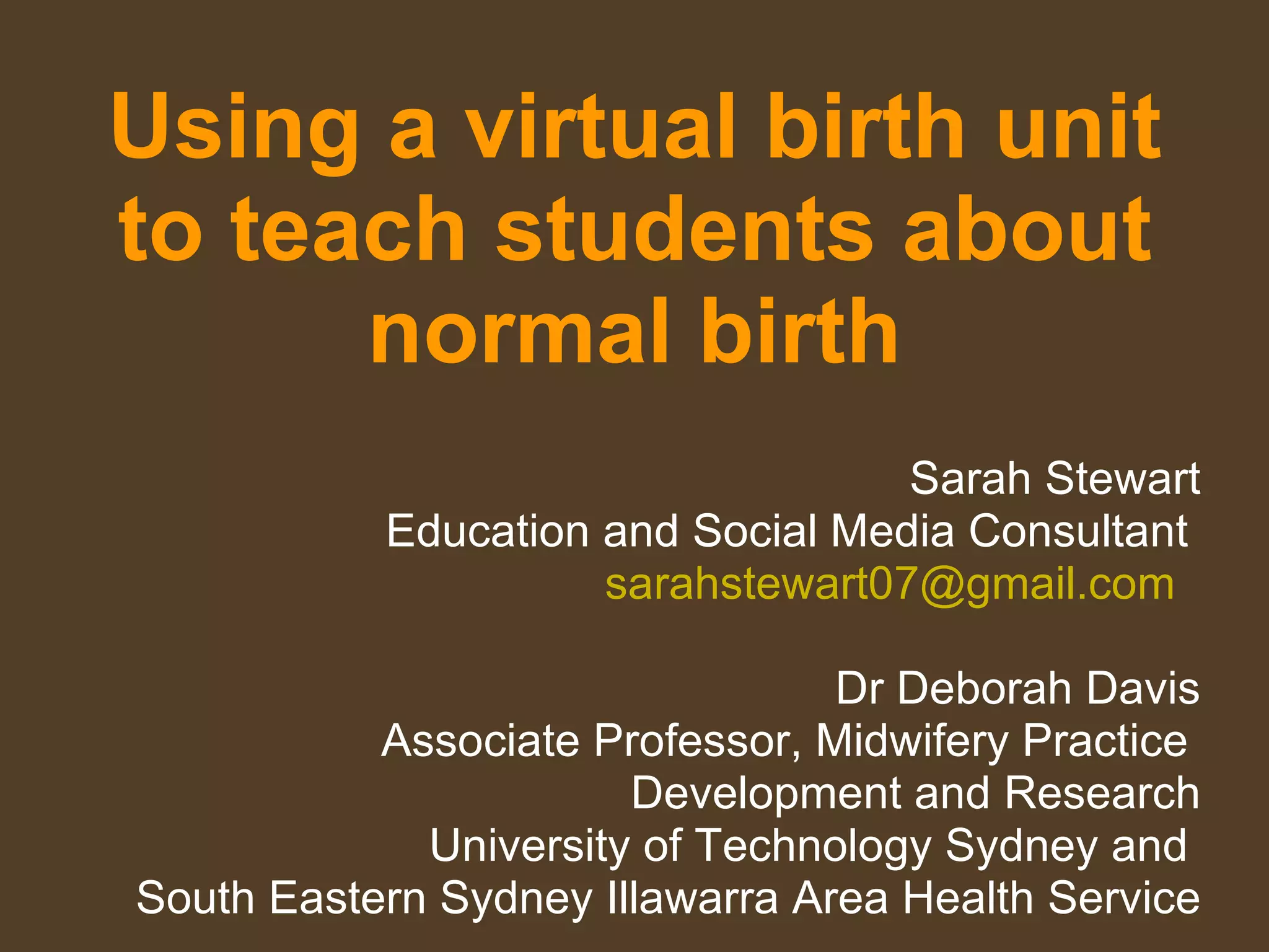 The document discusses the use of a virtual birth unit as an educational tool for students to learn about normal childbirth. It outlines a collaborative project team from various institutions, highlighting contributions from educators, developers, and researchers. Additionally, it includes links to resources and preliminary student feedback on the project.