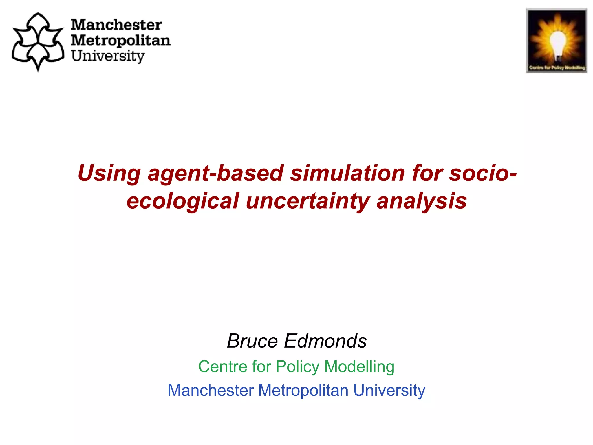 The document presents a seminar by Bruce Edmonds on using agent-based simulation to analyze socio-ecological uncertainty. It discusses the complexity of socio-ecological systems, the inadequacy of traditional prediction models, and how simulations can reveal unexpected outcomes and risks, particularly in relation to human interactions with ecosystems and fisheries management. The document emphasizes the dynamic nature of these systems and the significant role humans play in ecological adaptation and the sustainability of resources.