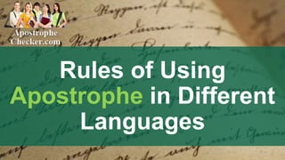 The document outlines the various uses of the apostrophe in different languages, highlighting its roles in indicating possession, the omission of letters, and separating affixes from words. It includes specific examples, such as its functionality in Turkish and Ukrainian, and its role in marking sounds and modifying letters in languages like Hawaiian and Mayan. The text emphasizes the importance of proper apostrophe usage and encourages readers to use an online apostrophe checker for better grammar.