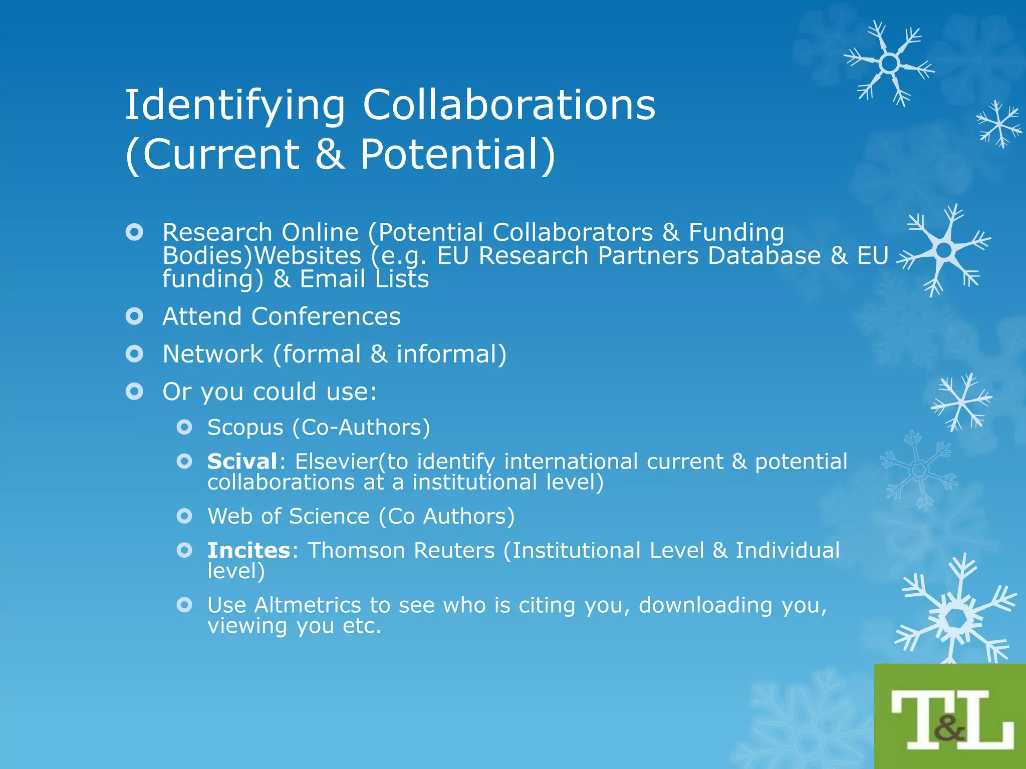 The document outlines strategies for improving the visibility and impact of academic publications using bibliometric tools. Key strategies include optimizing discoverability through effective keyword usage, selecting reputable journals, leveraging altmetrics, and enhancing author identities. It emphasizes the importance of collaboration, open access, and utilizing various platforms for sharing research to increase citations and overall academic impact.