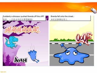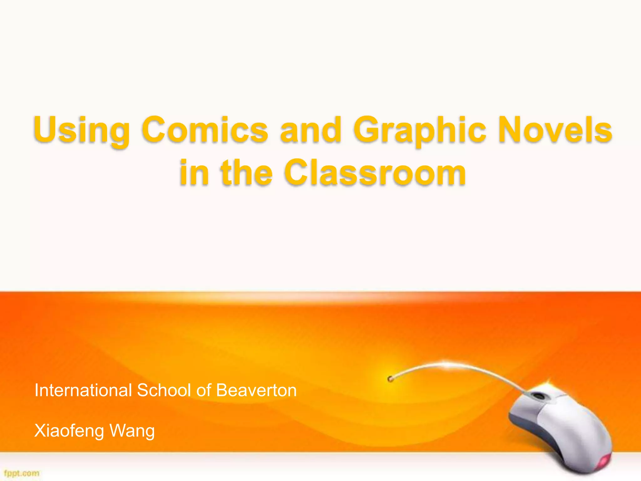 The document discusses the use of comics and graphic novels in educational settings, highlighting their benefits for visual and engaging learning experiences. It introduces various online comic creation tools, provides examples of comics, and emphasizes the need for clear instructions and multiple options for students. Teachers are encouraged to integrate comics into their lessons to enhance student interest and understanding of language and culture.