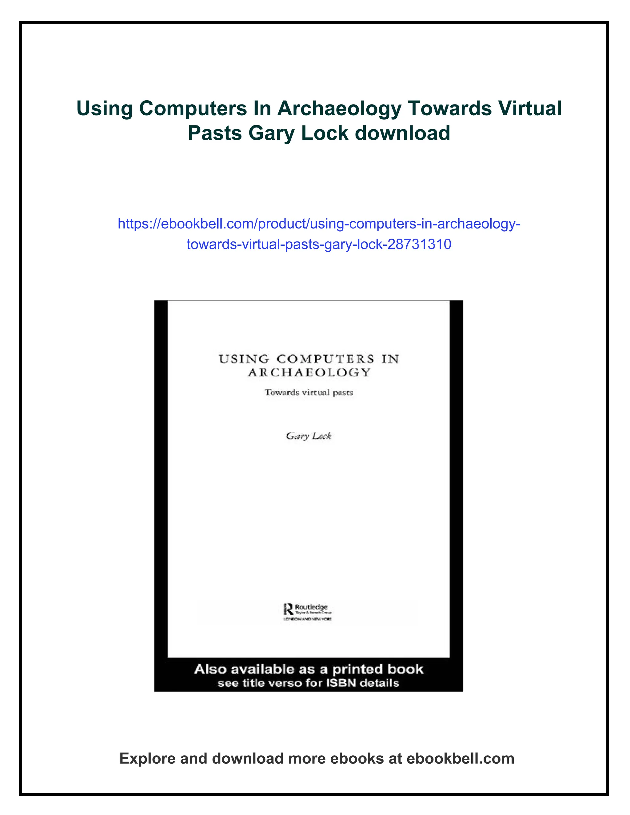 Using Computers In Archaeology Towards Virtual Pasts Gary Lock