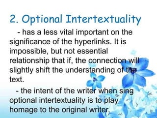 Optional intertextuality happenswhen a text