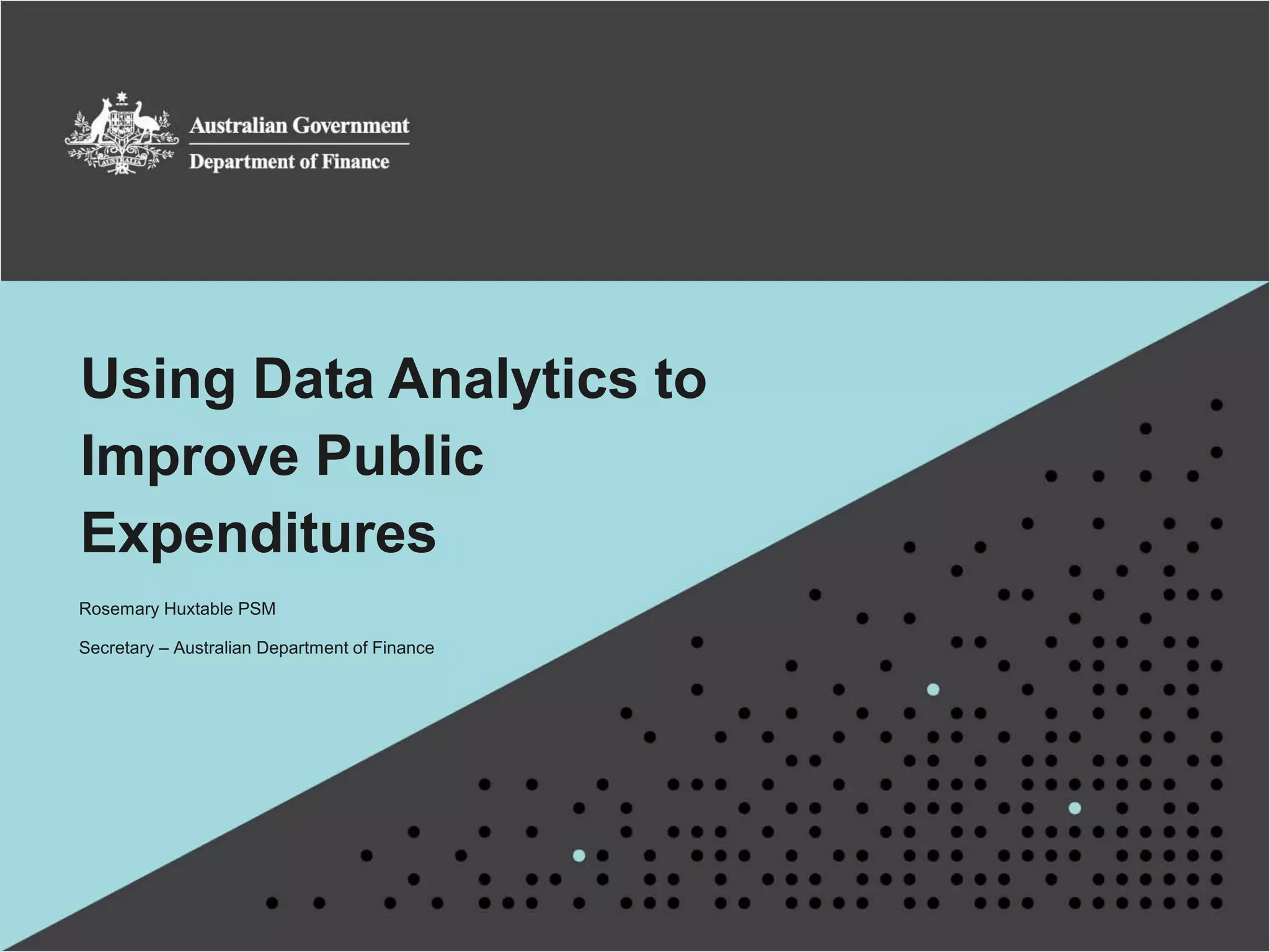 The document discusses the use of data analytics to enhance public expenditure management in government, emphasizing its role in achieving policy goals amidst rising citizen expectations. It outlines the process of data analytics, highlights a hypothetical benefit payment policy change, and demonstrates the implications of such changes on various income groups. Additionally, it addresses the importance of building capabilities, data sharing, and the future potential of real-time data integration for improved decision-making.
