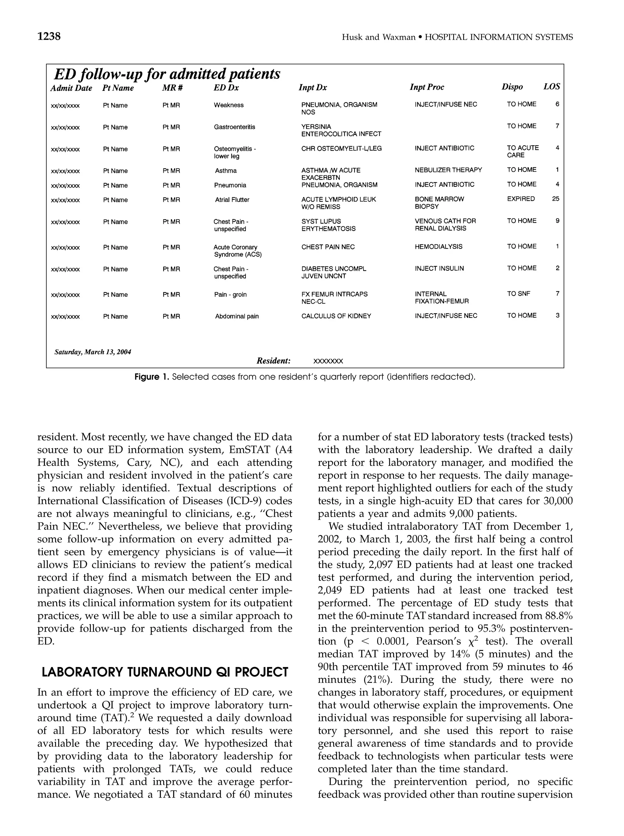1. Providing follow-up information on patients admitted from the ED to educate staff.