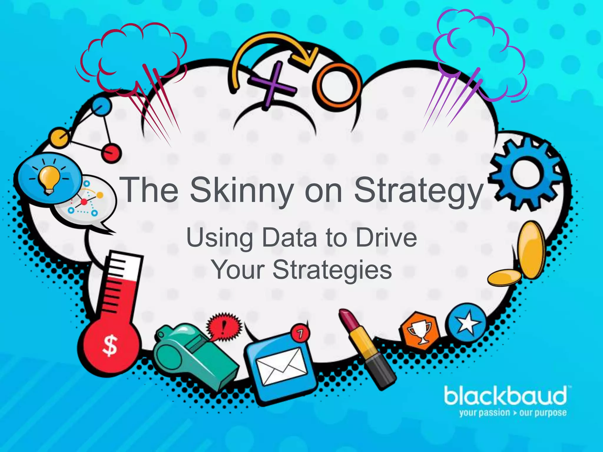 This document summarizes a webinar about using data to drive fundraising strategies. The webinar discusses benchmarking fundraising performance against industry averages, reviewing past performance metrics, and identifying opportunities for growth. Specific tactics discussed include increasing the percentage of registrants who fundraise, helping good fundraisers raise more, and setting goals based on an organization's unique strengths. The webinar is part of a series providing tips on using data and engagement to improve peer-to-peer fundraising.