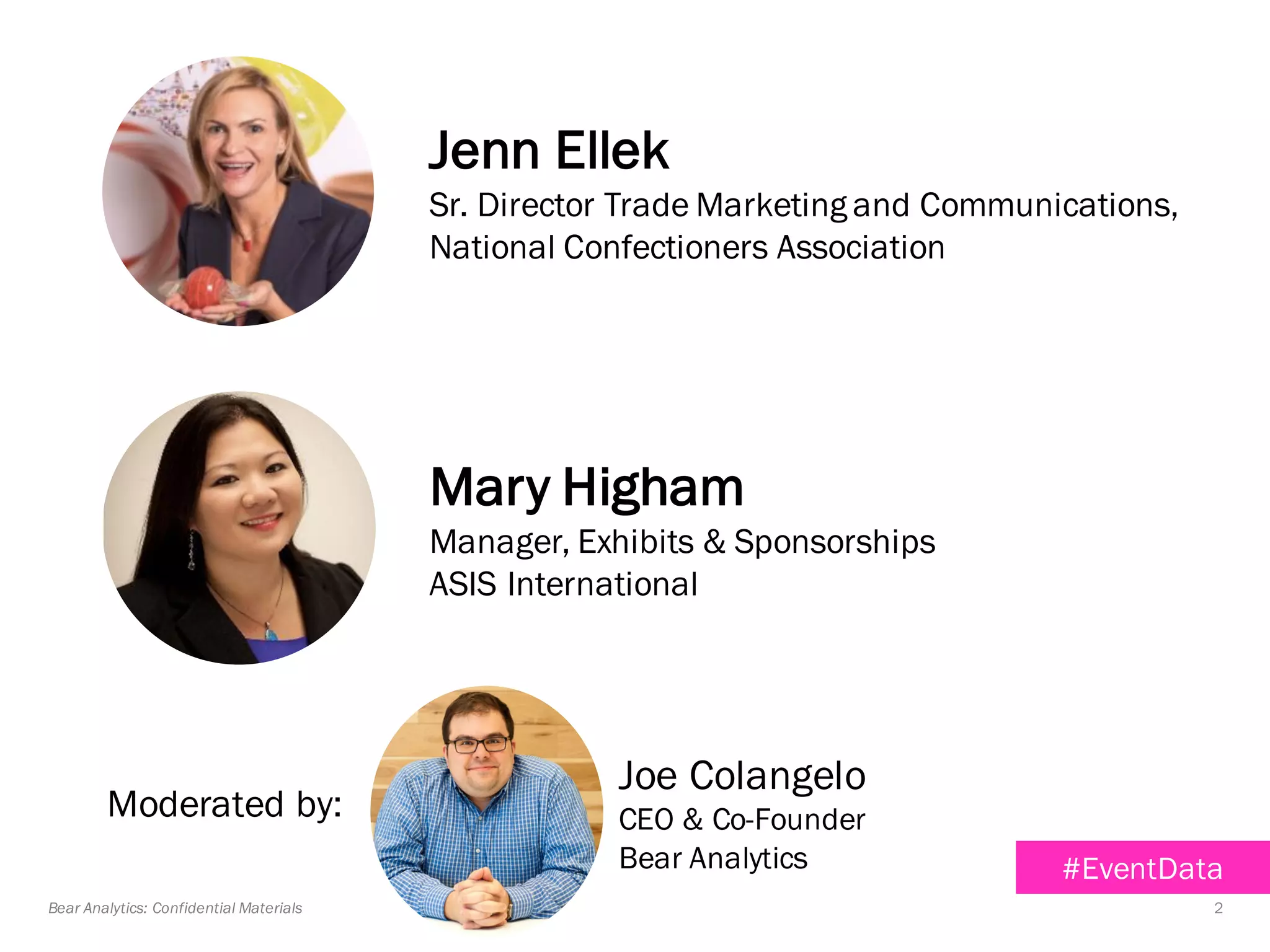 1) The document discusses how event organizers can use data to improve exhibition sales and attendee marketing. It describes case studies of how the National Confectioners Association and ASIS International have used data analytics.