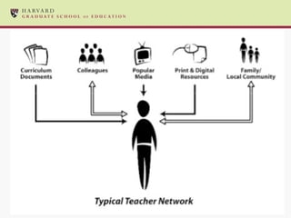 The document discusses the integration of web 2.0 tools to enhance the teaching of 21st-century skills, emphasizing the importance of personal learning networks and community involvement in education. It explores how these technologies can transform instructional practices and engage students in meaningful ways, while also addressing challenges in implementing such changes within existing educational systems. The authors encourage reflection on local capacities and the development of supportive environments for ongoing professional learning around technology use.
