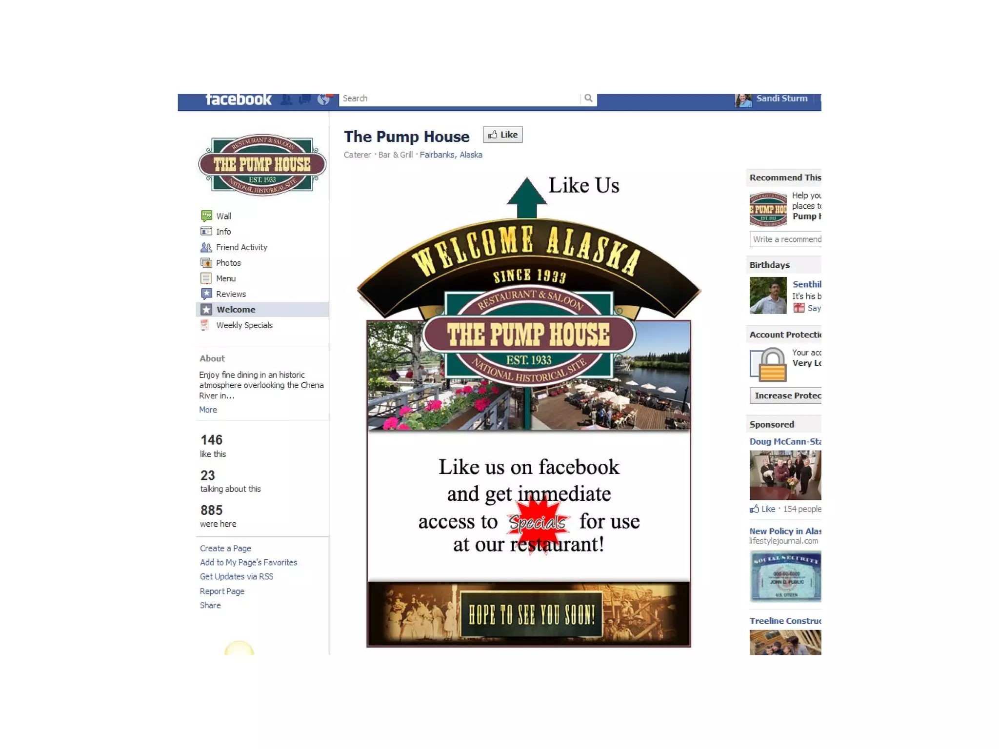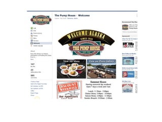 The document outlines a Facebook marketing strategy for a business called Pump House Wine. It includes creating a content calendar, designating staff to create and post content, and measuring results. It provides ideas for types of engaging posts including sharing articles, contests, events, tips, questions and tagging people. It also offers best practices such as being interactive, creating a connection to the outside world, introducing new products on Facebook first, and focusing on the audience rather than the business.