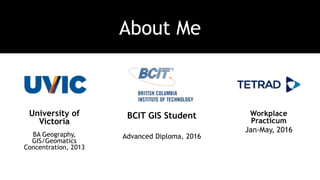 This document discusses the use of GTFS (General Transit Feed Specification) datasets by Nick Ison, a BCIT GIS student, detailing the structure and required components of GTFS files essential for public transportation scheduling information. It highlights challenges in accessing and interpreting transit data due to the complexity of formats and suggests that FME 2016 can facilitate data handling and processing. The summary also outlines Nick's project goals, including preprocessing data for web accessibility and improving integration with GTFS feeds.