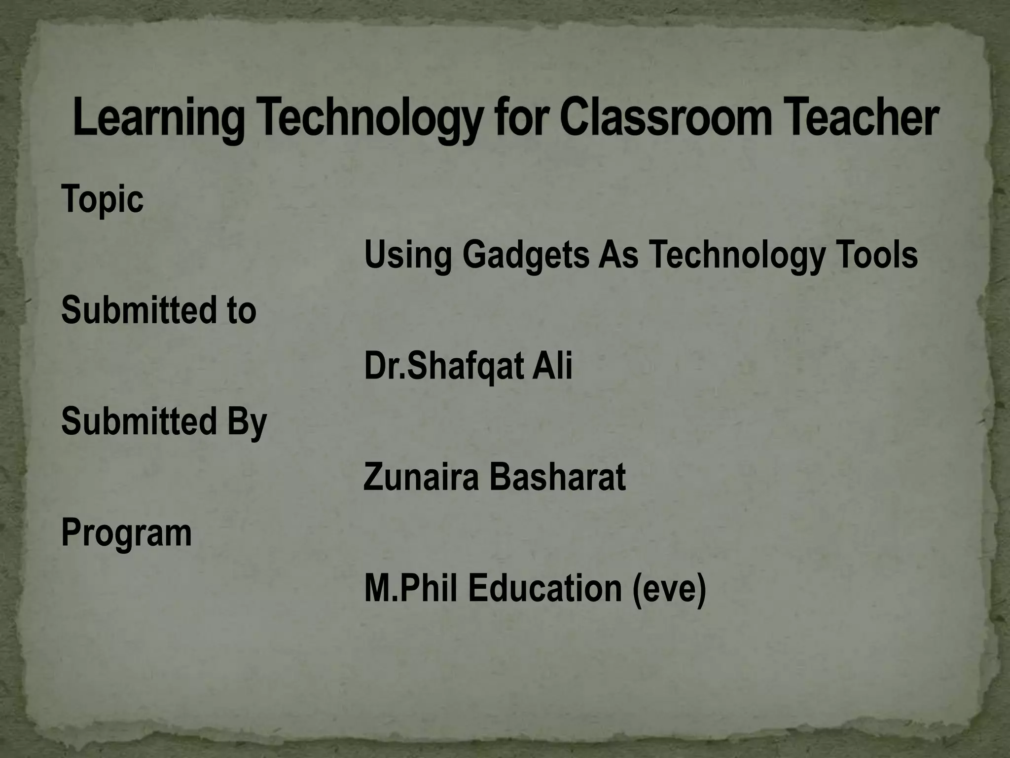 The document discusses using gadgets as technology tools in education. It defines technology and educational technology, noting that technology can enhance relationships between teachers and students when integrated effectively. It then defines gadgets and tools, providing examples of common gadgets used as technology tools in classrooms like computers, smartphones, cameras, and interactive whiteboards. The document outlines advantages, like bringing fun and applicable education to the classroom, and disadvantages, such as potential access to inappropriate content or reduction in students' thinking abilities.