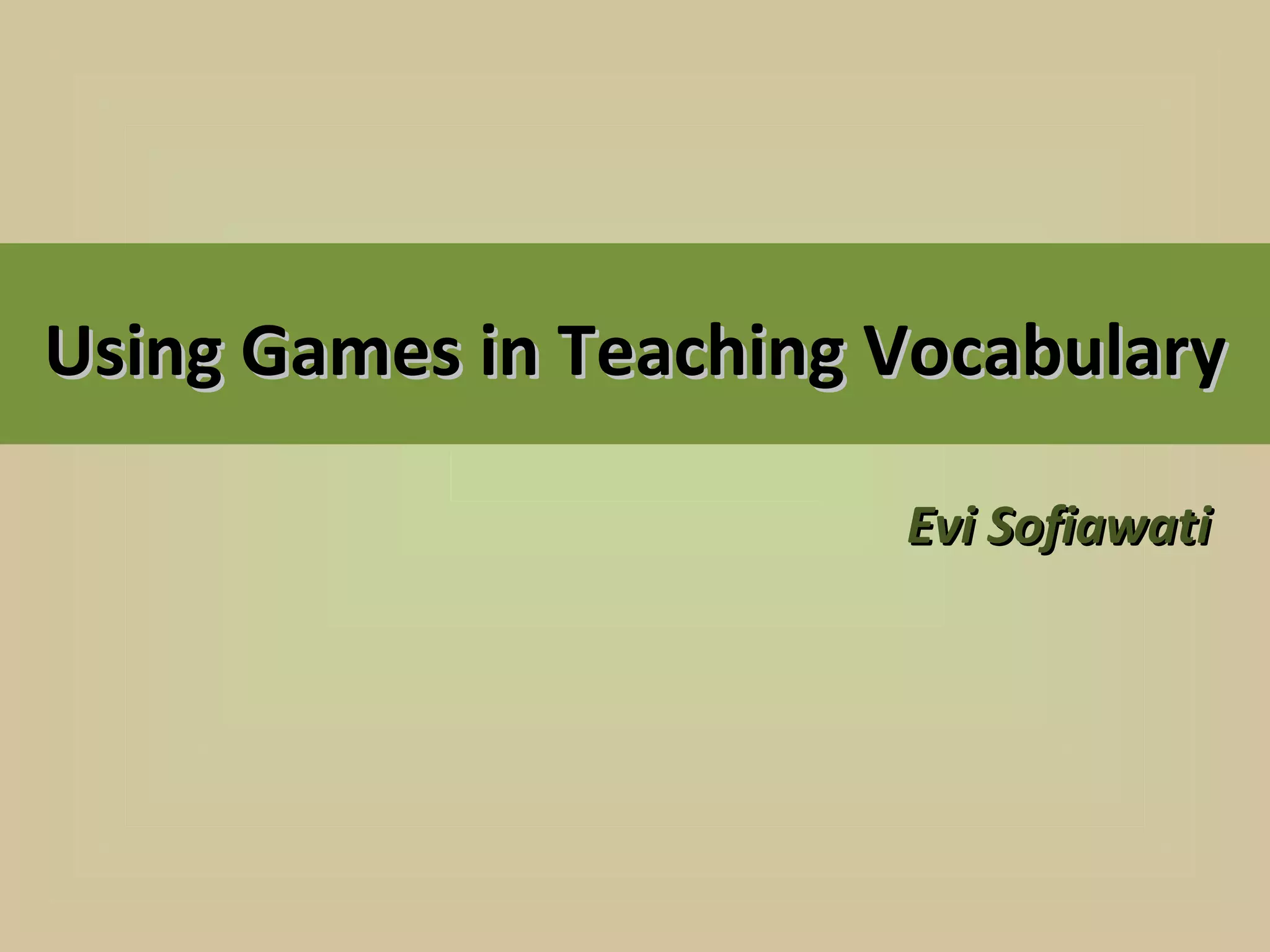 This document discusses using games to teach vocabulary. It explains that games can help lower students' affective filters, promote active participation and problem solving, and cater to different learning styles. It then provides an example lesson plan that uses several vocabulary games, including ambiguous pictures, association, matching, and crossword, to teach occupation-related vocabulary to 5th and 6th grade students. The games are designed to engage students physically and intellectually while reinforcing the new vocabulary terms based on theories of multiple intelligences, learning styles, constructivism, and total physical response.