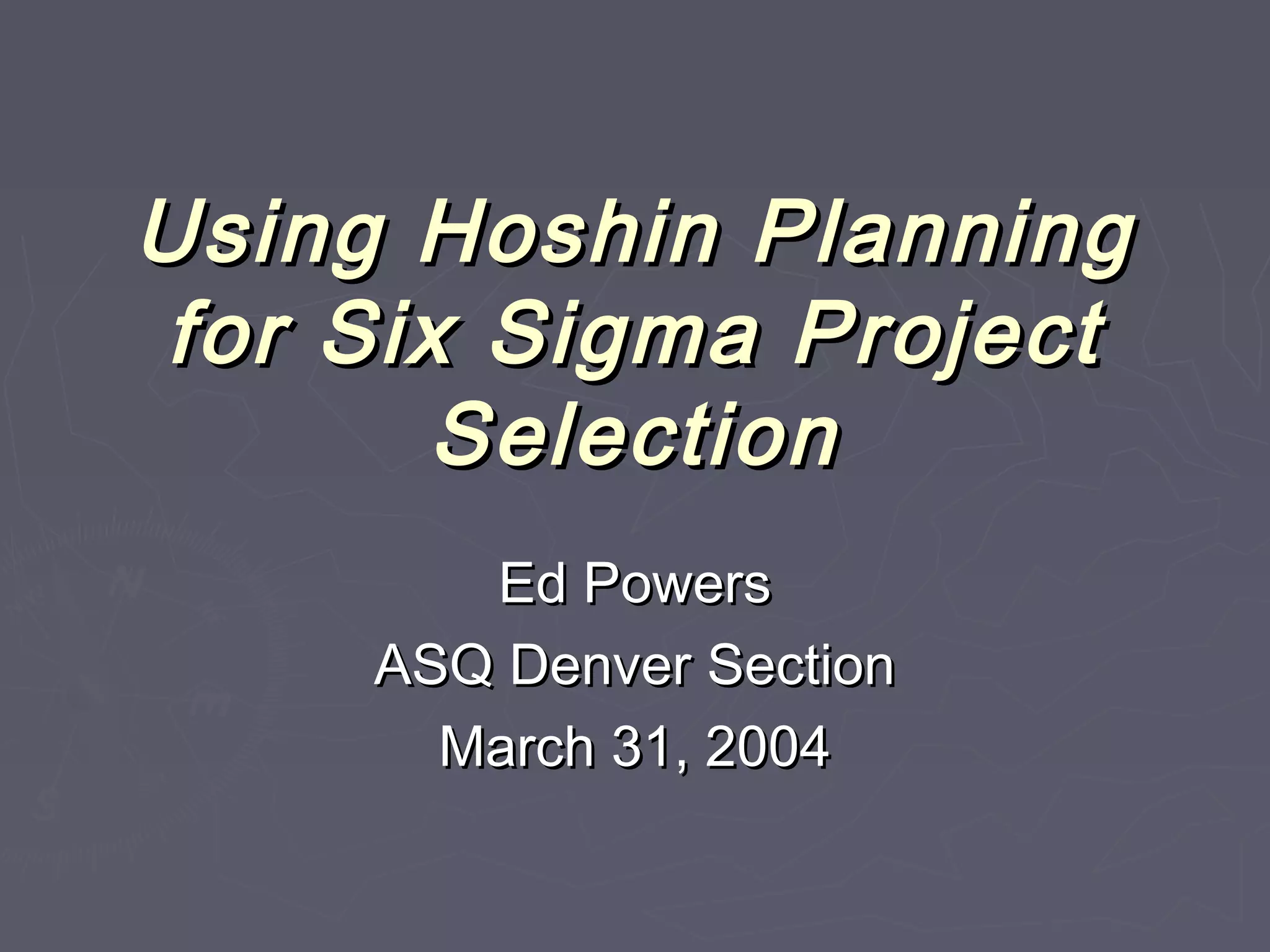 The document discusses using Hoshin Planning to improve the selection and success of Six Sigma projects, emphasizing its importance in linking strategy to project outcomes. It details the Hoshin Planning process, including project hopper creation, strategy alignment, and implementation planning through structured reviews. A case study illustrates the application of Hoshin Planning in a fast-growing company facing operational challenges.