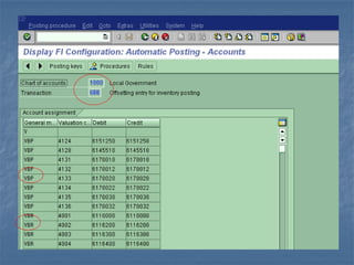 The document outlines a 9 step process for using SAP IDEA to establish that material codes are appropriately mapped to general ledger accounts. It involves downloading material valuation records and descriptions, importing them into IDEA, identifying offsetting inventory posting entries, downloading standard accounts tables, joining the files and account descriptions, and exporting to Excel for review. The process flow summarizes material valuation records by material number and valuation class and adds material descriptions before identifying offsetting entries and joining account descriptions.