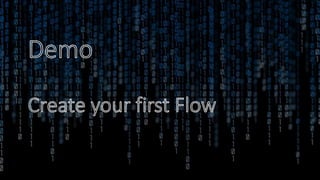 The document provides an overview of using Microsoft Flow for IT professionals, highlighting its integration with PowerShell and various demo examples. It discusses the functionality of flow templates, connectors, and webhooks, alongside advanced conditions and data gateways. The content is aimed at illustrating how to create and manage automated workflows effectively.