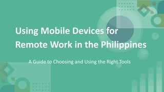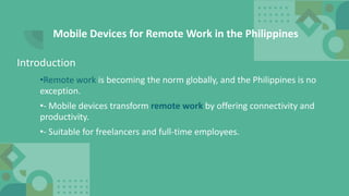 Remote work is rapidly becoming the norm globally, and the Philippines is no exception. The rise of mobile devices has transformed how Filipinos participate in this trend, making it easier for professionals to stay connected and productive regardless of location. From freelancers to full-time remote employees, mobile devices such as smartphones and tablets are essential tools for work-from-home setups. If you're considering switching, here's everything you need to know about using mobile devices for remote work in the Philippines.