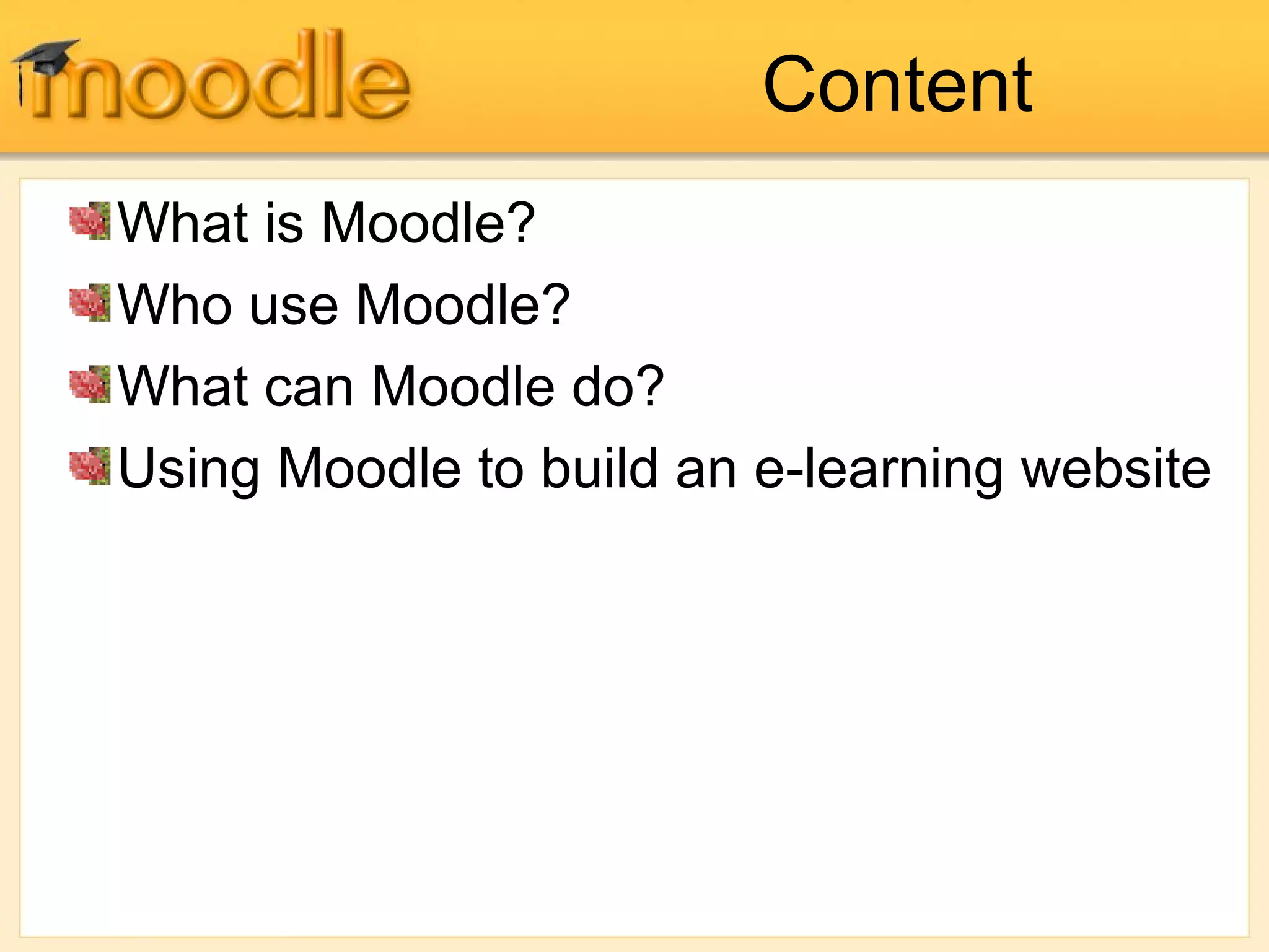 Moodle is a free and open-source learning management system that can be used to build e-learning websites. It allows educators to create online courses with various tools like assignments, quizzes, forums and resources. Moodle has over 400,000 registered users worldwide and is used by schools, universities and companies. It provides features for course management, learner management and website management. Learner management in Moodle includes tracking learner information, dividing learners into groups, and viewing grades and access reports. Moodle allows for flexible online learning experiences and effective learning communities.