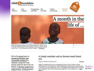 The document discusses how multimedia content such as audio, video, photos and social media can help non-profit organizations better communicate their mission and impact. It provides examples of small charities like ColaLife and Child's i Foundation that have created successful multimedia campaigns using tools like videos, photos and blogs. Their use of multimedia content humanizes the organizations and makes their work more easily shareable online to engage supporters and raise awareness. The document encourages organizations to consider how they can show rather than just tell their stories through multimedia content.