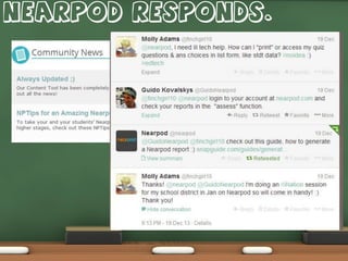 The document presents innovative approaches to enhance student learning through interactive technology, specifically using the Nearpod platform for engaging presentations and assessments. It emphasizes the importance of social and experiential learning, referencing cognitive neuroscience and social learning theory. The speaker, Molly Adams, advocates for teachers to facilitate hands-on experiences that promote student agency in their educational journey.