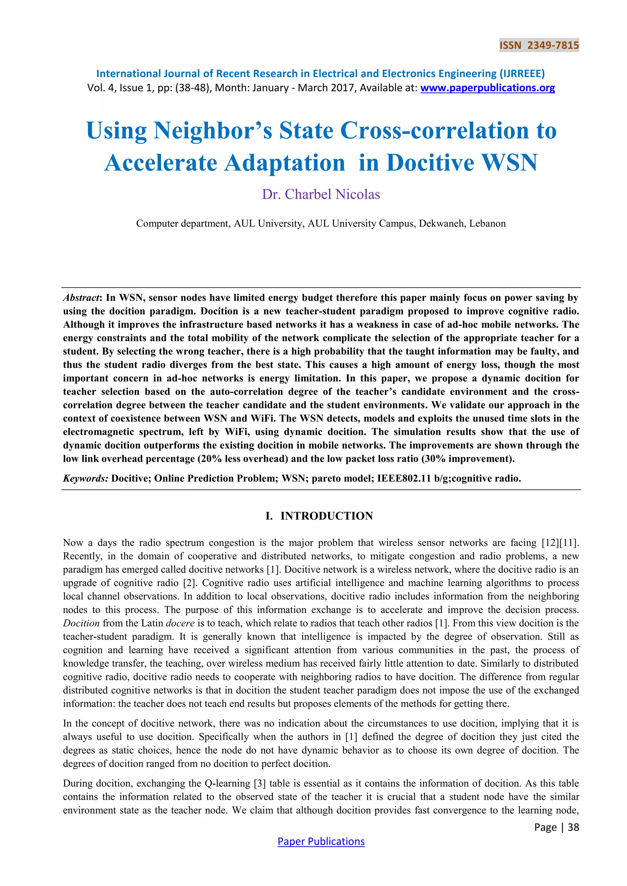 This paper introduces a dynamic docition approach for teacher selection in wireless sensor networks (WSN) to enhance energy efficiency and performance. The proposed method addresses the challenges of mobile ad-hoc networks by determining the appropriate level of docition based on environmental predictability, leading to improvements in packet loss and overhead. Simulation results demonstrate that dynamic docition outperforms traditional methods in terms of energy savings and communication efficiency.