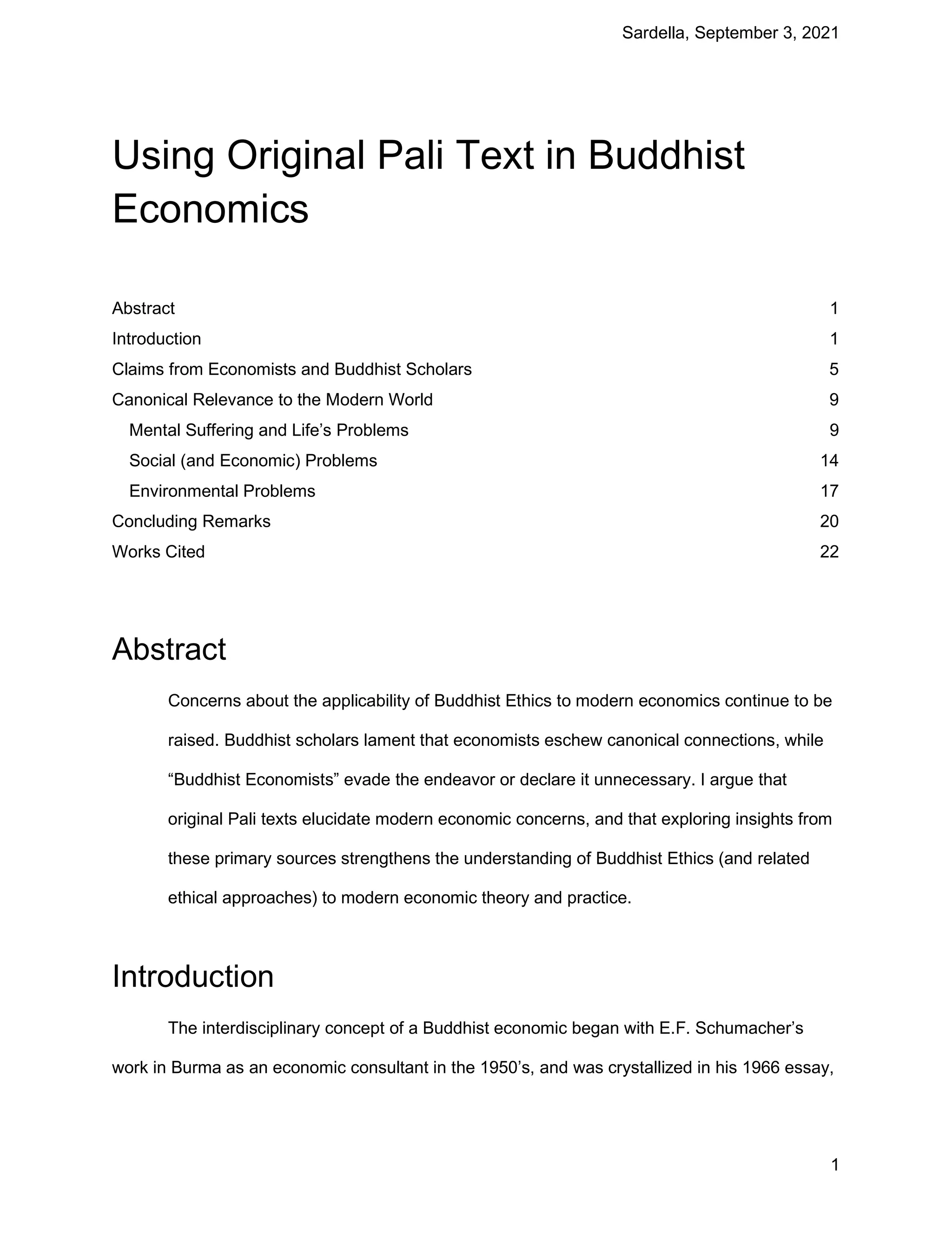 The document discusses the intersections of Buddhist ethics and modern economics, highlighting that original Pali texts can provide insights into contemporary economic issues. It critiques the current approach to Buddhist economics, which often lacks direct connections to canonical texts, advocating for a more scriptural basis in economic theories to address human suffering and environmental crises. The author emphasizes the importance of ethical considerations in economics, suggesting that a re-examination of Buddhist principles can contribute to sustainable economic practices.
