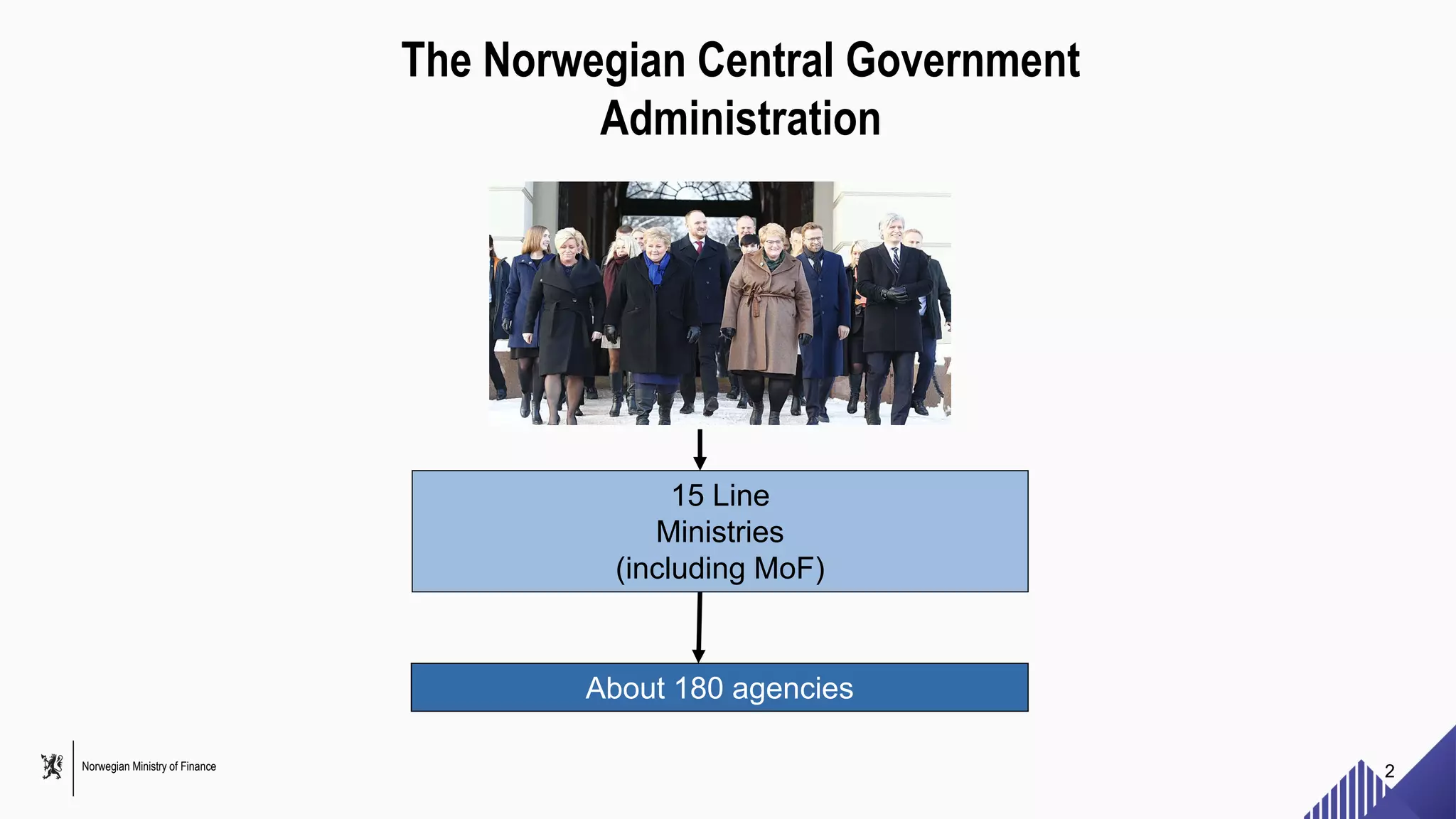 The document outlines the decentralized system of public administration in Norway, emphasizing the managerial flexibility of ministries and agencies, along with a consensus-driven decision-making culture. It details the performance management framework, highlighting the annual objectives, reporting requirements, and the ongoing dialogue between ministries and agencies. The framework aims to enhance efficiency but notes limited direct links between performance outcomes and funding allocation.