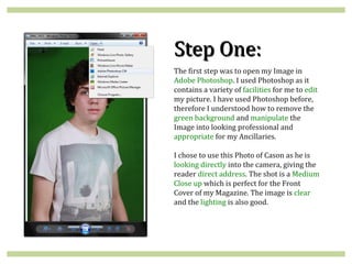 The document provides a 7-step guide for using Photoshop technologies to edit a photo for professional purposes: