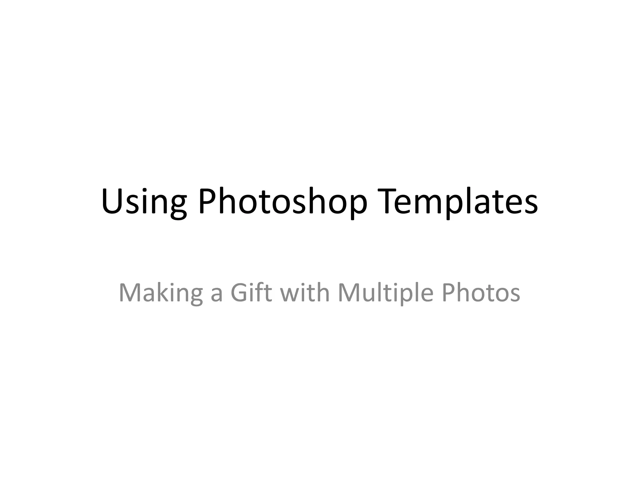 This document provides instructions for using Photoshop templates to create a gift with multiple photos. The steps include: