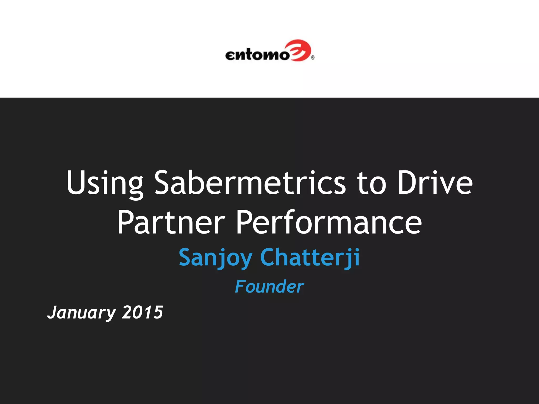 The document discusses the application of sabermetrics in channel management to enhance partner performance and maximize revenues. It outlines various types of scorecards, a channel maturity model, and emphasizes the importance of smart spending and data validation in assessing partner effectiveness. The final thoughts stress the need for careful planning and technology access to effectively utilize scorecards for driving desired partner behaviors.
