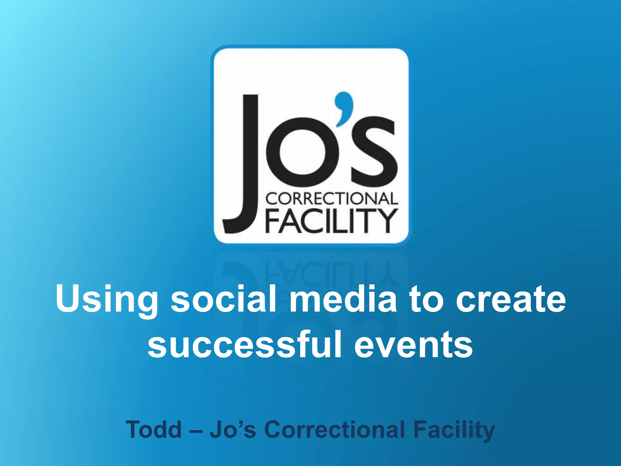 Todd provides tips for using social media to promote events in 3 stages: before, during, and after the event. Before the event, promote on social media by adding handles, hashtags, and asking connections to share. During the event, engage with attendees using the hashtag and share photos. After the event, continue conversations online, write a blog recap, and stay connected to promote future events. The overall advice is to use social media consistently at all stages to create buzz and engage attendees.
