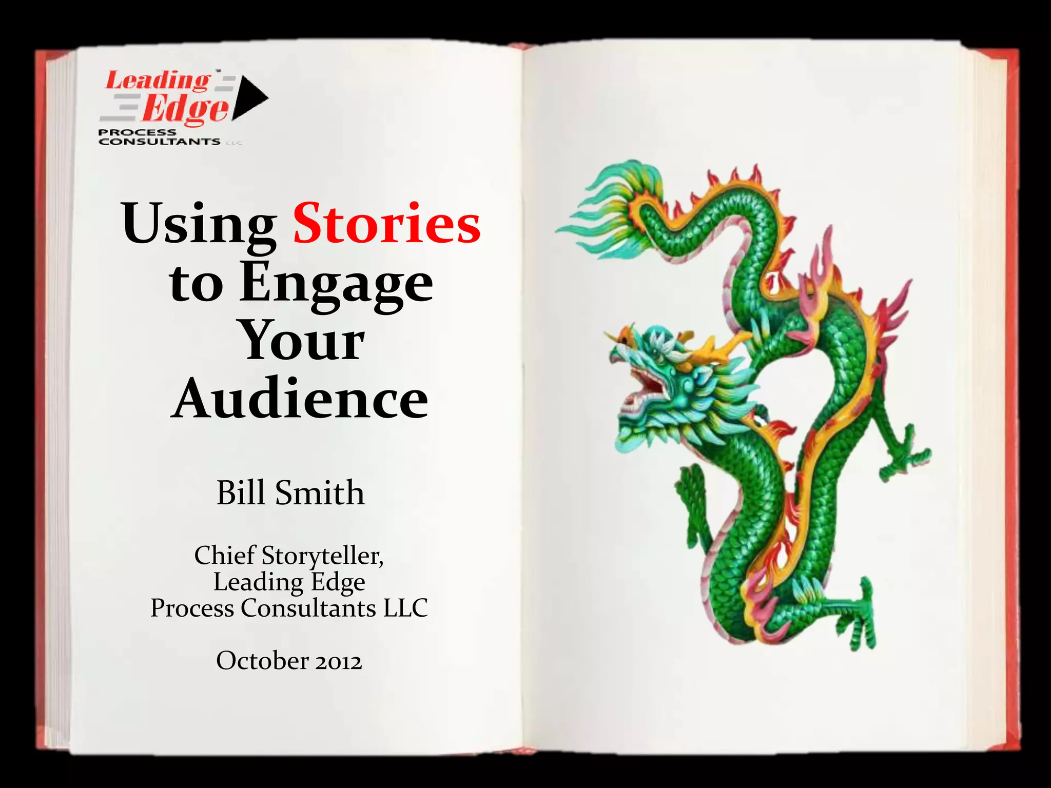 This document presents a seminar on the importance of storytelling in business presentations, emphasizing how engaging narratives can enhance audience connection and retention of information. It contrasts the ineffective presentation style of an instructor named Bob with the successful techniques used by another instructor, Beth, highlighting key elements such as structure, conflict, and delivery. The presentation aims to inspire speakers to transform their approach to presentations by incorporating emotional storytelling to create more powerful and memorable experiences for their audiences.