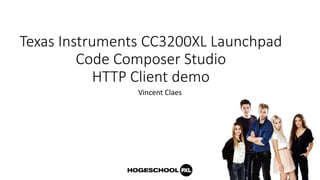 This document provides instructions for setting up and running an HTTP client demo application on a Texas Instruments CC3200XL Launchpad development board using Code Composer Studio. It describes downloading Code Composer Studio and the CC3200 SDK, importing and configuring the http_client_demo project, setting up the debug target for the CC3200 board, building and debugging the project, and viewing output in the terminal window. The goal is to have fun exploring the capabilities of the CC3200XL Launchpad.