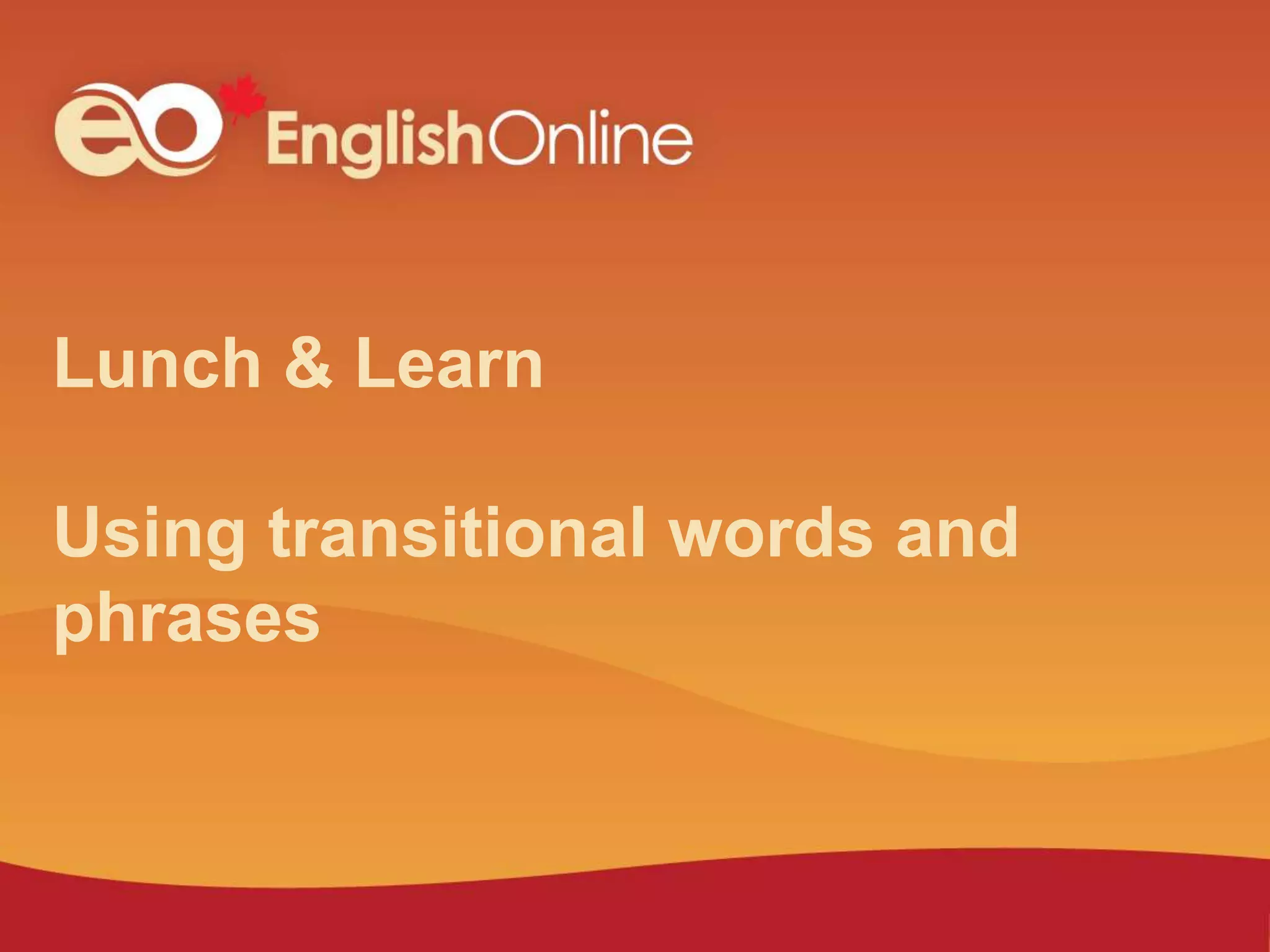 This document discusses transitional words and phrases. It begins by defining transitional words as phrases or words that are used to connect one idea to the next. It then provides examples of different types of transitional words and what purpose they serve, such as showing cause and effect, contrasting ideas, similarities, concessions, building on ideas, emphasis, restating ideas, indicating time or place relationships. The document concludes with examples of using transitional words correctly in sentences and a question and answer practice section.