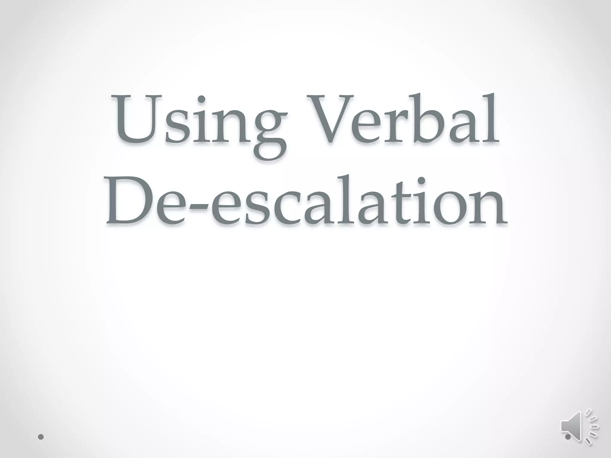This document provides guidance on verbal de-escalation tactics to prevent dangerous situations from escalating. It discusses how to identify threats and use non-physical communication to defuse tensions. Key recommendations include listening without judgment, understanding other perspectives, addressing underlying needs, setting clear limits, staying calm and in control of body language. De-escalation requires opening communication respectfully without barriers while protecting one's own safety. Seeking help from others is advised if a situation becomes threatening.