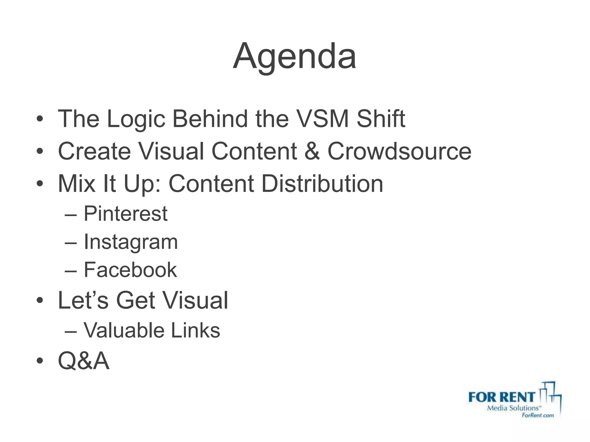 The document outlines strategies for using visual social media platforms like Pinterest, Instagram, and Facebook for branding and content distribution. It emphasizes the importance of creating engaging visual content, leveraging user-generated content, and utilizing best practices for image optimization and audience engagement. The document also highlights statistical insights and practical tools for maximizing the effectiveness of visual social media efforts.