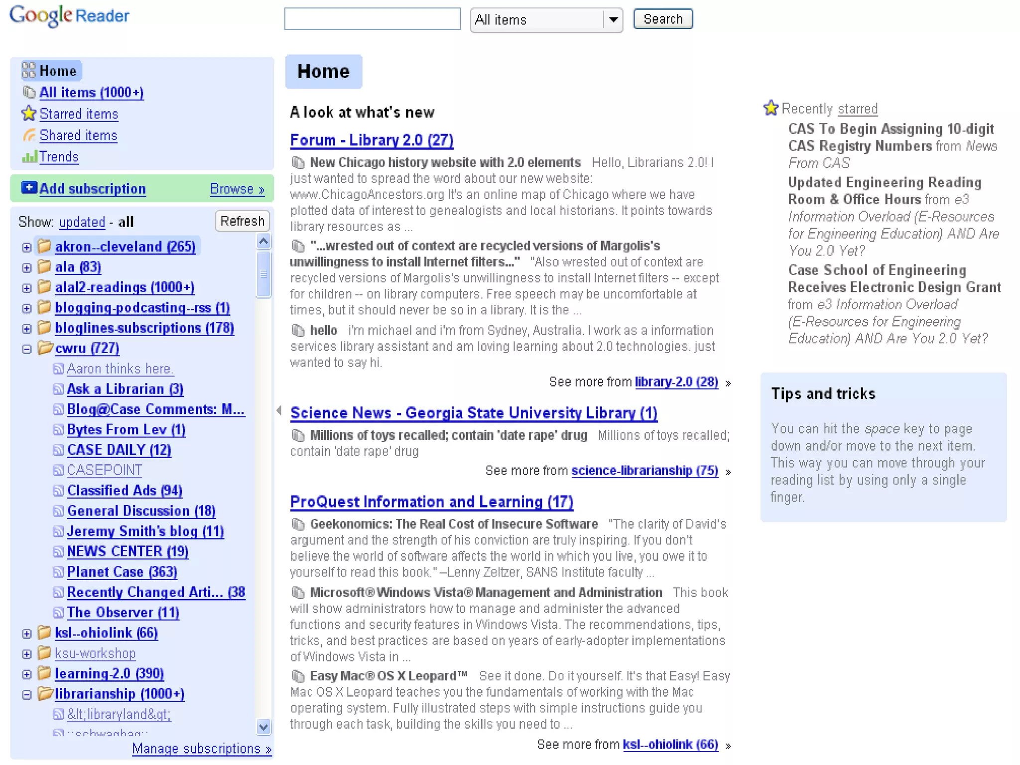 This document discusses the use of RSS (Really Simple Syndication) feeds to receive updates from websites without visiting each site individually. It provides an overview of what RSS is, the benefits of using RSS such as receiving updates without email notifications, and how to access RSS using desktop readers, web-based readers, or email-based readers. It also discusses how libraries can use RSS feeds to share updates and resources with patrons, and how patrons may start to judge the currency of library services based on their use of RSS feeds.