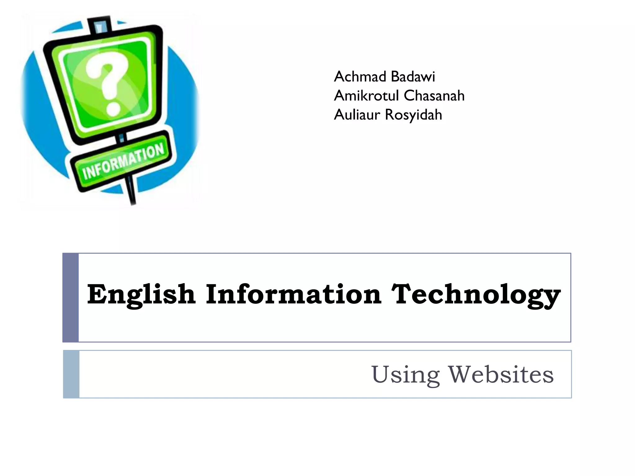 The document discusses using websites in the English language teaching classroom. It covers choosing between authentic websites and websites designed for English language teaching, how to find useful websites, how to evaluate websites, planning lessons that incorporate websites, working with lower levels of proficiency, and dos and don'ts for teaching with websites.
