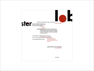 The document discusses different types of typographic contrast that can be used in design, including size, weight, form, structure, texture, color, and direction. It provides examples of each type of contrast using text from historical designers like Baskerville and Fournier. The key point is that judicious use of contrast between type styles, sizes, colors etc. allows designers to emphasize important information and guide the reader's eye.