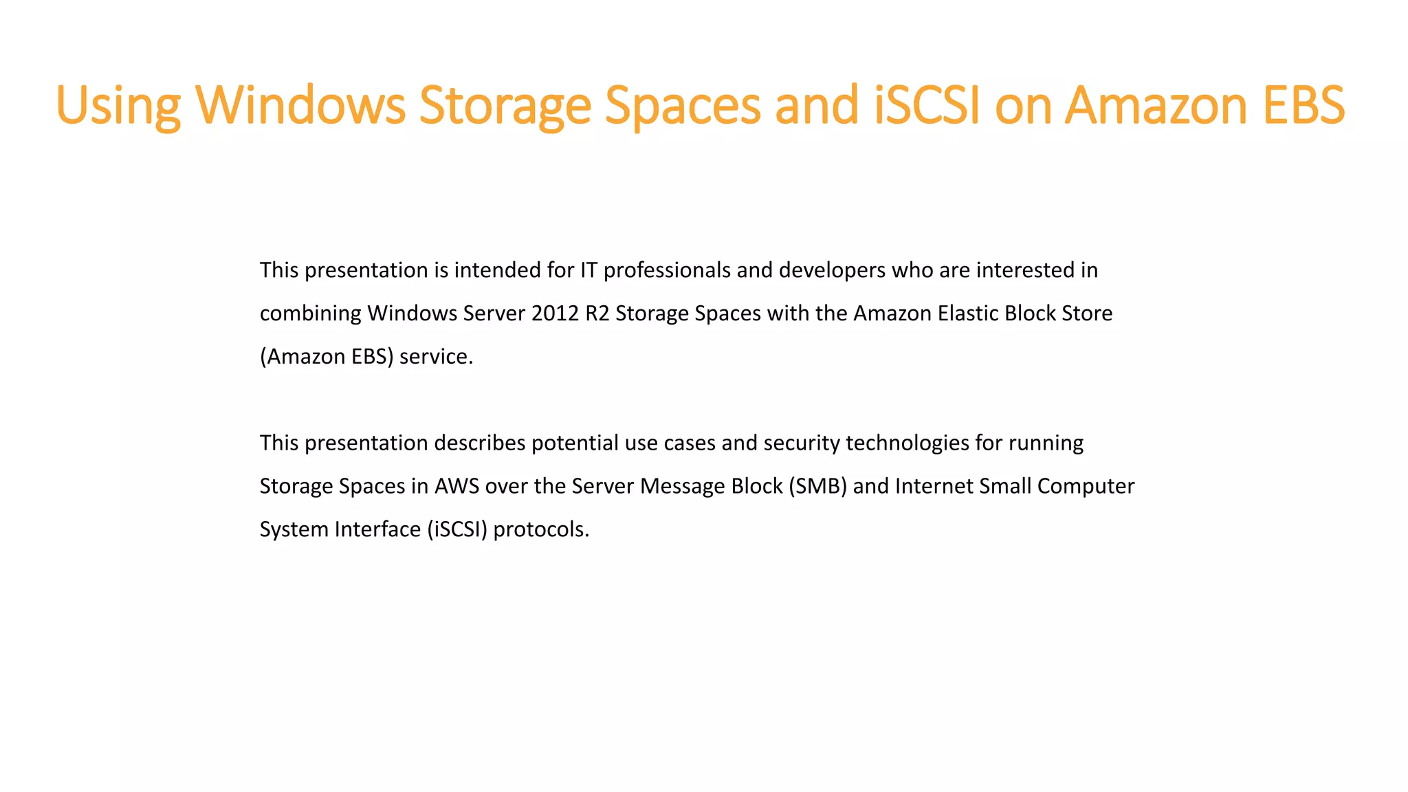 Using Windows Storage Spaces and iSCSI on Amazon EBS